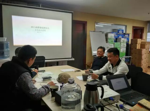 4月11日下午,成都市葡萄酒协会2017年度第一次会长办公会在协会办公室召开,会议由会长 周劲松 主持召开,监事长/成都欧洲房子企业管理有限公司 总经理 吴江西、常务副会长/成都靓久橡木桶酒窖 董事长 陈瑞东、秘书长/逸香国际总经理 吴忠出席。