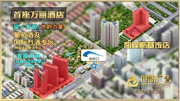 地铁火车北站经9个站到达桐梓林站,即可到达葡萄酒及国际烈酒专区(凯宾斯基酒店+首座万丽酒店)