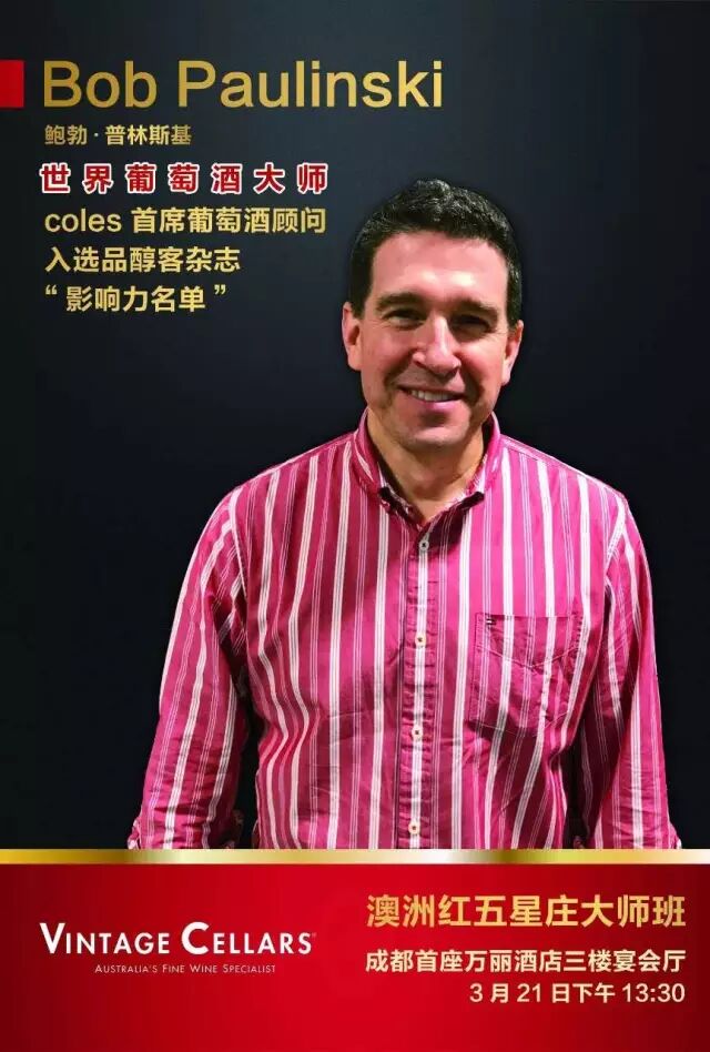3月21日下午,coles酒业将在成都首座万丽酒店举办“澳洲红五星庄葡萄酒品鉴会”。首席葡萄酒顾问Bob Paulinski MW也将空降成都,带领我们体验一次纯粹的澳大利亚红五星名庄的之旅。