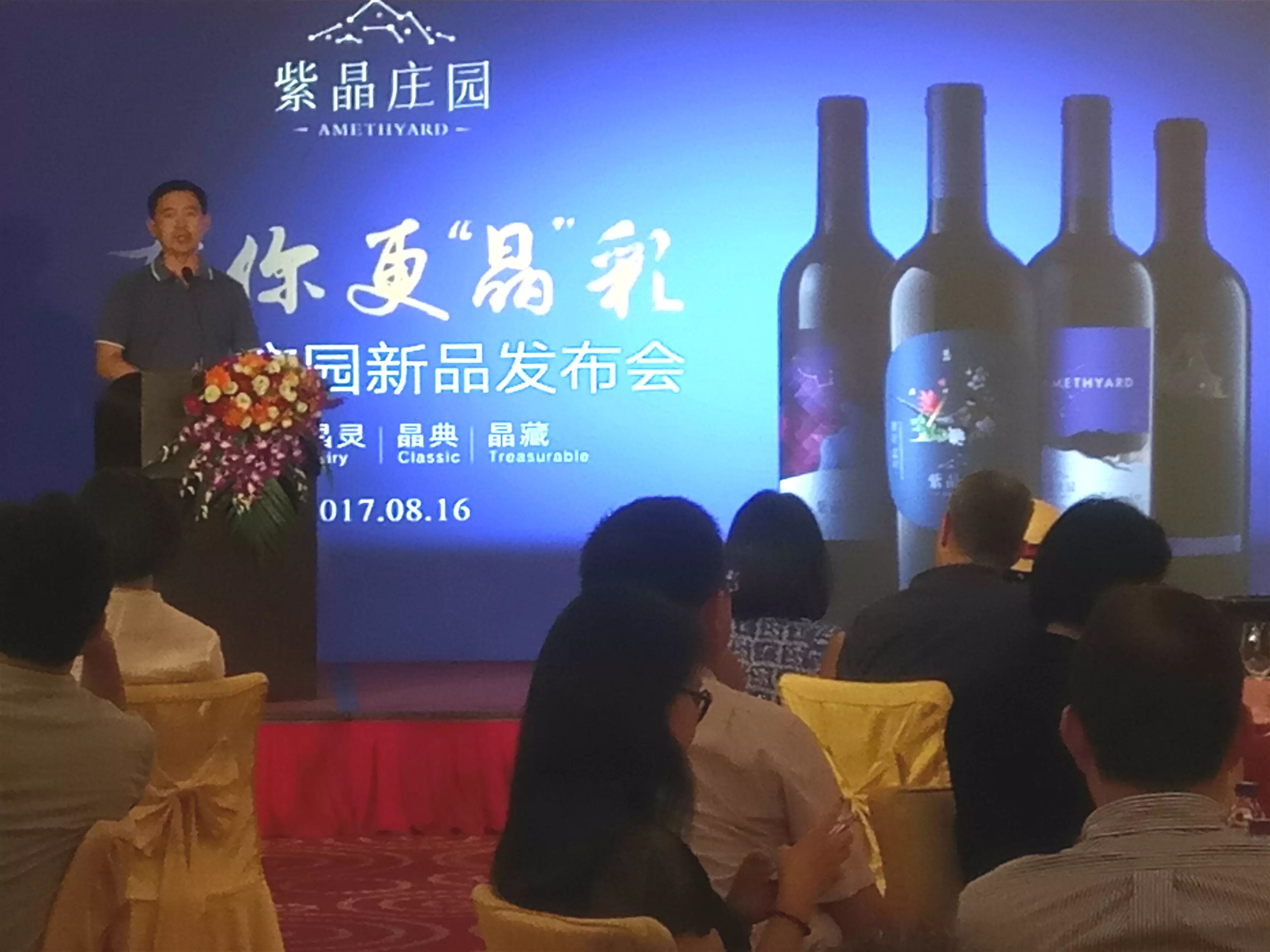 8月16日,有你更“晶”彩——怀来紫晶庄园新品上市发布会在北京好苑建国酒店隆重举办,作为权威媒体《法国葡萄酒评论杂志》(RVF)评选出的2017年中国年度最佳酒庄,紫晶庄园的晶彩、晶灵、晶典、晶藏四个系列产品与广大消费者亮相。现场,中国酒业协会葡萄酒分会秘书长王祖明先生、比利时布鲁塞尔中方代表北酒所总经理朱力先生、北京农科院李德美教授、中国农业大学马会勤教授、中国农业大学战吉宬教授、贝丹德梭中国负责人庄武英先生、微酿创始人紫晶庄园品牌顾问白羊徐先生、卓上设计总监武宽夫等众多行业人士、业内知名行业专家以及多家媒体与庄主马树森先生共同见证了这一发布盛典。