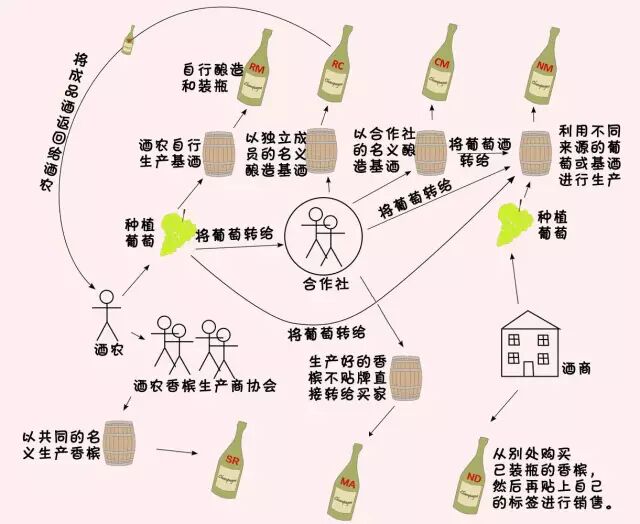 RC(合作社独立生产商):全称为“Recoltant Cooperateur”。酒农生产商会借用合作社的设备进行生产,之后再以自己的名义进行销售。